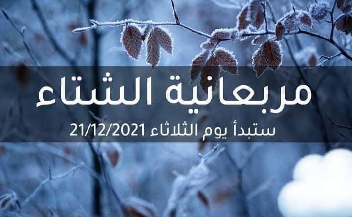 نودع يوم الثلاثاء الواقع في 21/12/2021 الساعة 15:59 دقيقة صباحا بالتوقيت العالمي (1:59) ظهرا بتوقيت سورية) فصل الخريف ونستقبل فصل الشتاء الذي سيستمر لمدة 91 يوما تقريبا وتحديدا حتى 20 /3/2022 الساعة 15.33 ظهرا بالتوقيت العالمي (1.33 بتوقيت سورية) وهو ما يعرف بالانقلاب الشتوي.
