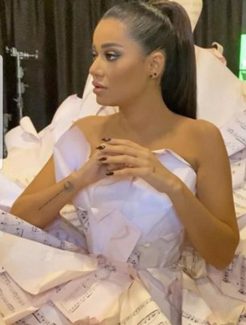 فأطلت رياض بالصور مرتدية فستاناً مصنوعاً من النوتات الموسيقية التي ترعرعت عليها، وأرفقتها بتعليق: الفنون جنون كتبولي حبيتوا الفستان؟