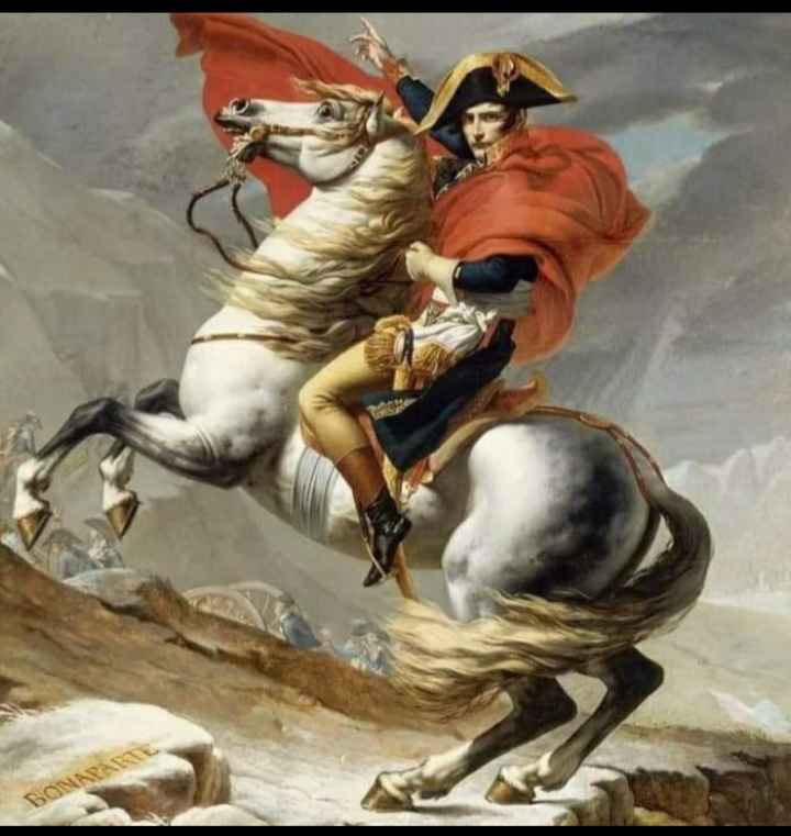 قبل أن يصبح نابليون امبراطوراً على فرنسا، كان بحاجة إلى شرعية تاريخية تؤهله ليصبح حاكماً للفرنسيين، فطلب من الرسام جاك لوي دافيد أن يرسم له لوحة تصوّره وهو يقود جيشاً عبر جبال الألب في ربيع عام 1800 لمفاجأة جيش النمسا، وخاصة أنه ثالث جنرال في التاريخ يحقق هذا الإنجاز.