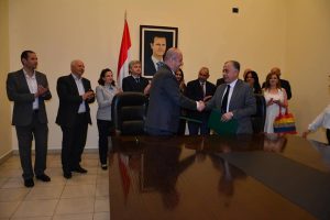 حضر التوقيع معاوني وزير السياحة م. غياث الفراح و م. نضال ماشفج ومدير الهيئة العام لتنفيذ المشاريع السياحية م. مهنا سكيكر وفريقي عمل وزارة السياحة والمؤسسة العامة للدراسات