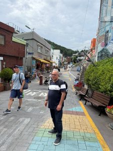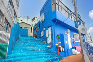 عندما وصلنا إلى مدينة بوسان الساحلية، استقلينا الحافلة الصغيرة التي شقت طريقها بصعوبة صعوداً نحو الجبل الشاهق. ومع كل منعطف حاد، كانت تلوح لنا ملامح تلك القرية الفريدة التي يُطلق عليها المسافرون لقب “سانتوريني كوريا”. التفتت إليّ سحر وقالت بحماس وعيناها تلمعان دهشة: “انظري يا عامر إلى هذه الألوان! وكأن شخصاً ما نثر علبة ألوان ضخمة على سفح الجبل”. كانت المنازل المتراصة بتدرجات الباستيل—الأزرق السماوي، الوردي الهادئ، والأصفر المشرق—تشكل لوحة فنية حية تعانق السماء، في مشهد ينسيك صخب العالم الحديث.