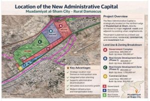 ونوهت المصادر إلى أن هيئة الاستثمار السورية توصلت إلى اتفاقية مع شركة لم يُعلن عن اسمها بعد، وذلك للبدء في تنفيذ مشروع العاصمة الإدارية الجديدة، وفق المخطط الرئيسي المعتمد للمشروع.